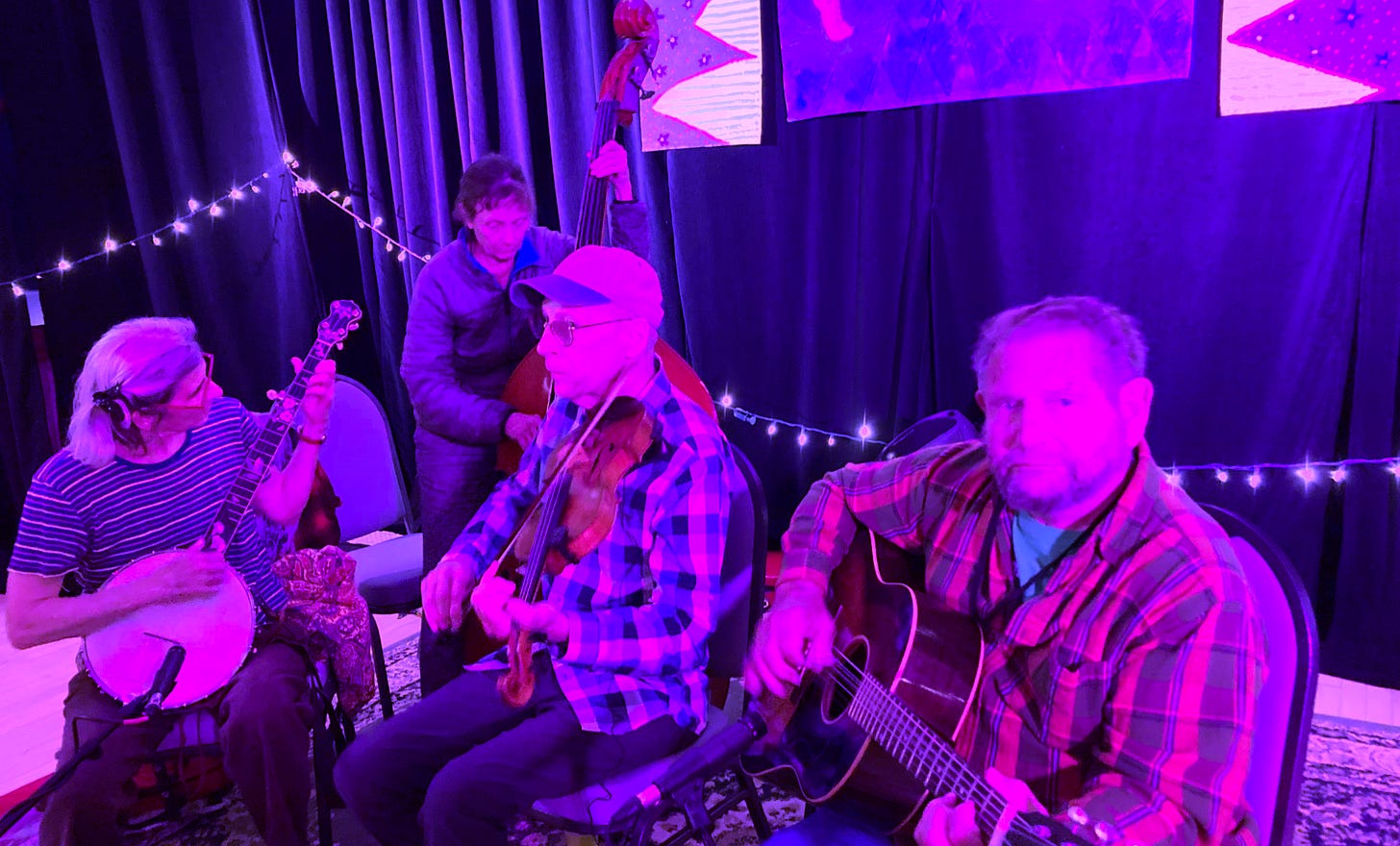 L-R Molly Tenenbaum, Meredith McIntosh, Paul Brown, Chester McMillian last month at Fiddle Tunes 2025, making music for a square dance. I keep my eyes on the dancers and the dance caller a lot. I also love dancing, and I think that helps me be a better musician for other dancers.